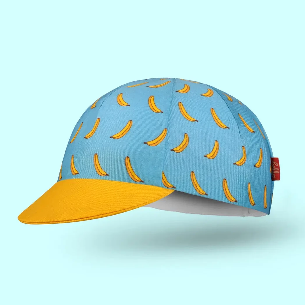 - Digitally printed, 100% cotton cycling cap with banana pattern and an incorporated sweat-band for extra comfort.