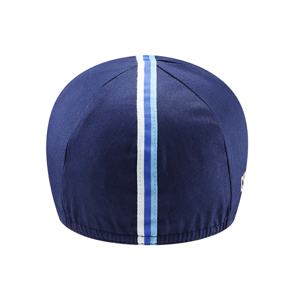 Our cotton caps feature a grosgrain ribbon stripe, capturing that classic look. Peak up, peak down, facing forwards or worn backwards to protect your neck, the cycling cap is the Swiss Army knife of cycling accessories.