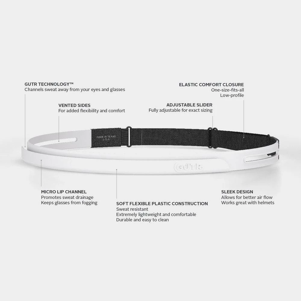 With a new, low-profile adjustable elastic closure, the GUTR FLEX™ is incredibly comfortable while fitting smartly under helmets. FLEX channels dripping sweat away from your eyes and glasses, so you can focus on what matters. GUTR® performance sweatbands are not fabric, so it will never soak, saturate, or quit. Lightweight and easy-to-clean, this is the Ultimate Sweatband®.